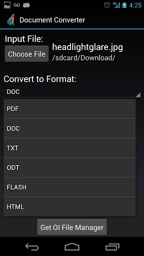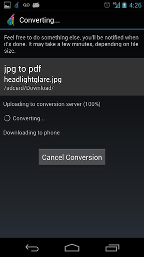 - YOU MUST have an internet connection to use this app. Files are uploaded to the cloud, converted, and then downloaded to your phone.